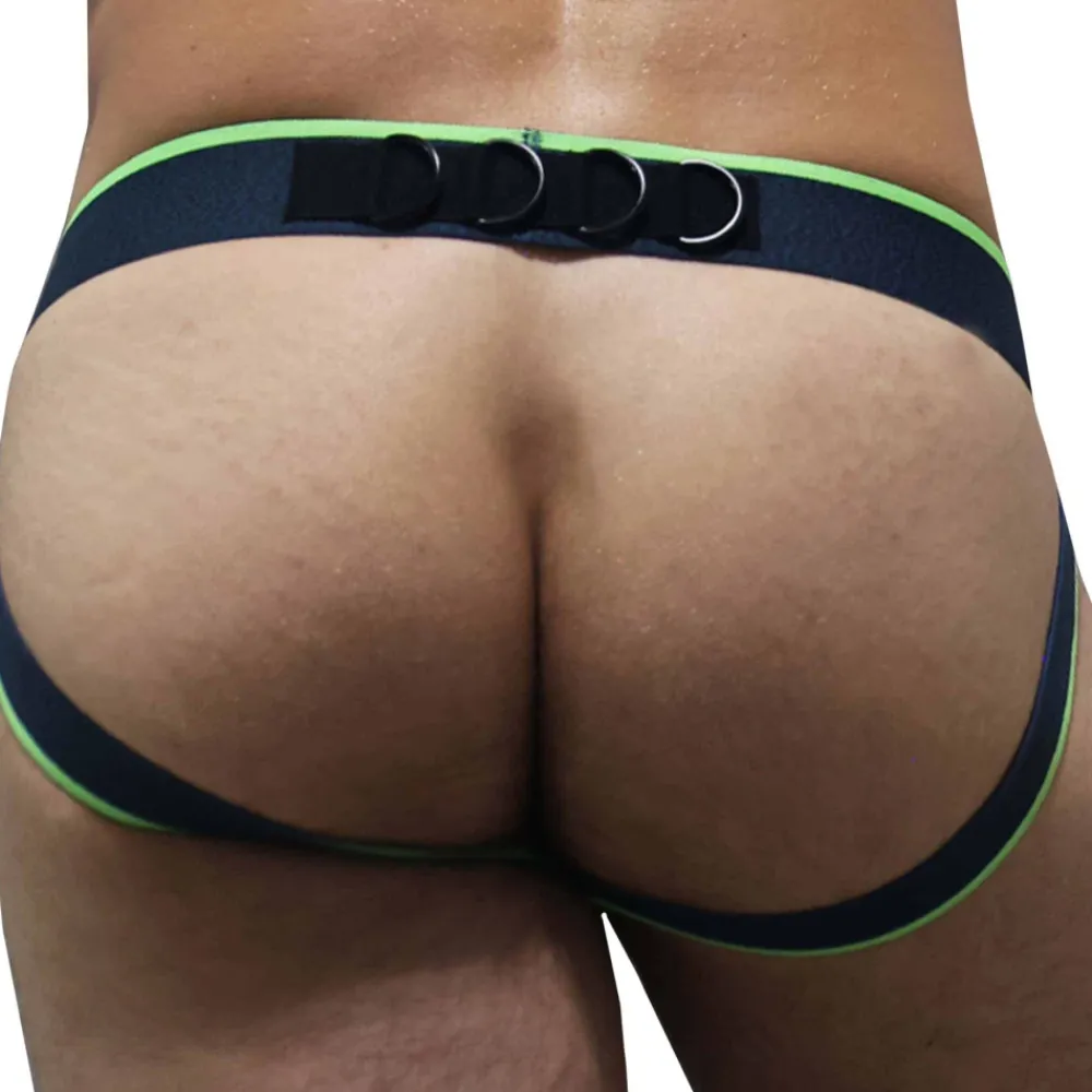 Jockstrap sexy en microfibre chinée ultra douce, fine et légère. Bandes contrastées soulignant le volume de la poche frontale. 2 anneaux métalliques permettent d’attacher le harnais Cockpit (vendu séparément). Ceinture élastique avec 4 autres anneaux métalliques décoratifs à l’arrière. Patch Breedwell devant.