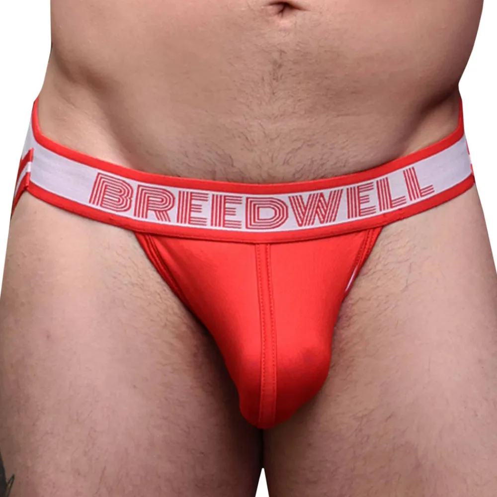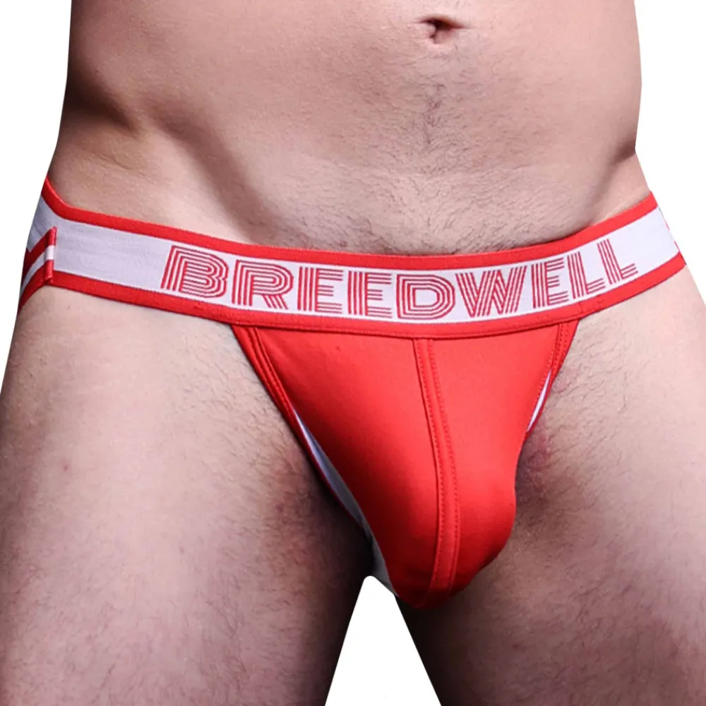 Jockstrap sport et sexy en microfibre extensible douce. Détails de couleur contrastée. Poche frontale non doublée. Ceinture élastique signée Breedwell avec patch en PVC à l’arrière.