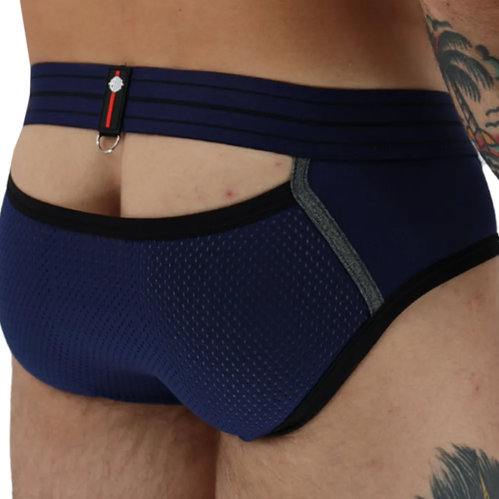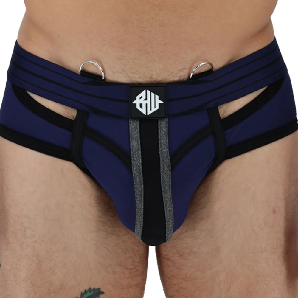 Slip sexy et sophistiqué en jersey épais et doux de qualité supérieure. Découpes à l’avant et à l’arrière qui mettent en valeur vos formes. Empiècement en mesh sur les fesses, laissant entrevoir la peau en transparence. Bandes contrastées soulignant le volume de la poche frontale. Ceinture élastique avec anneaux métalliques pour attacher un harnais body (vendu séparément). Patchs Breedwell en PVC.