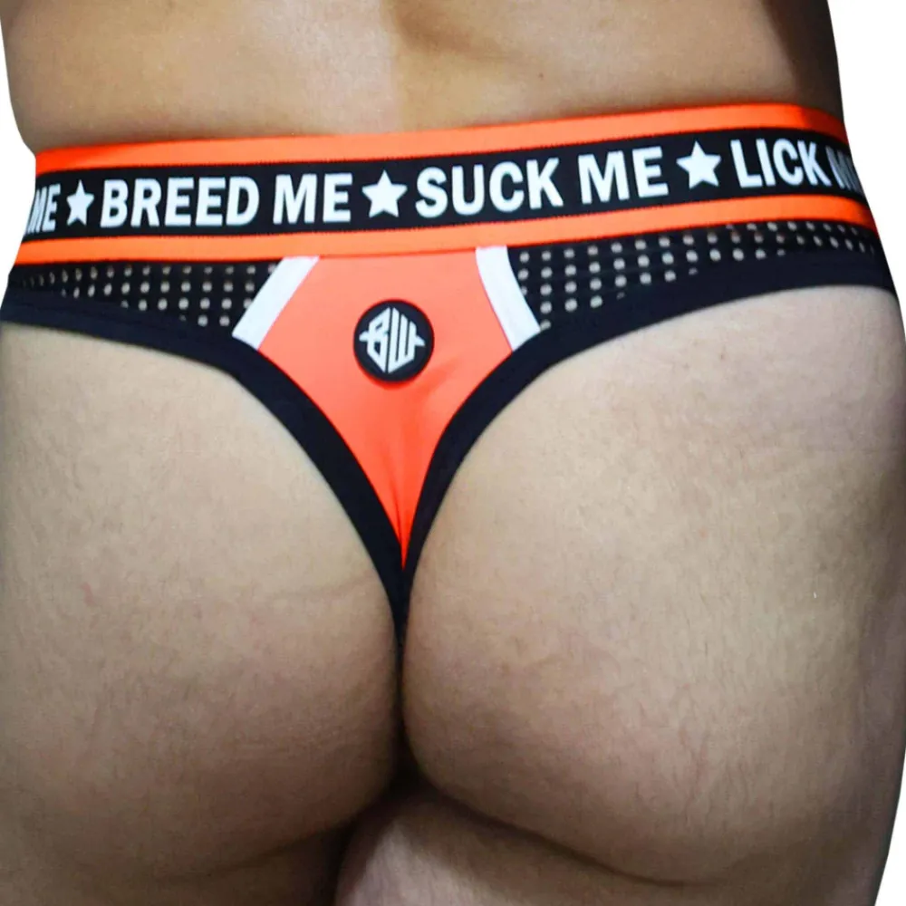 String très sexy en microfibre ultra légère, douce et confortable. Empiècements en résille noire sur les côtés. Ceinture élastique signée Breedwell ornée de messages provocants. 2 boucles métalliques pour attacher un harnais. Une petite poche intérieure permet de garder l’essentiel à portée de main. Poche frontale préformée décorée d’un motif à chevrons. Patch en PVC à l’arrière.