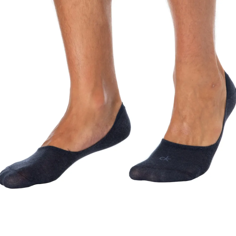 Lot de 3 paires de chaussettes invisibles en coton peigné doux et confortable. Coupe ne couvrant que partiellement le dessus du pied. Logo CK sur le pied. Talon antidérapant grâce aux fines bandes de silicone. 2 tailles : 39/42 et 43/46.