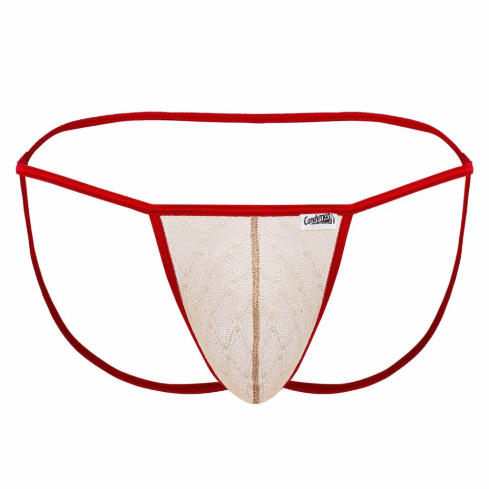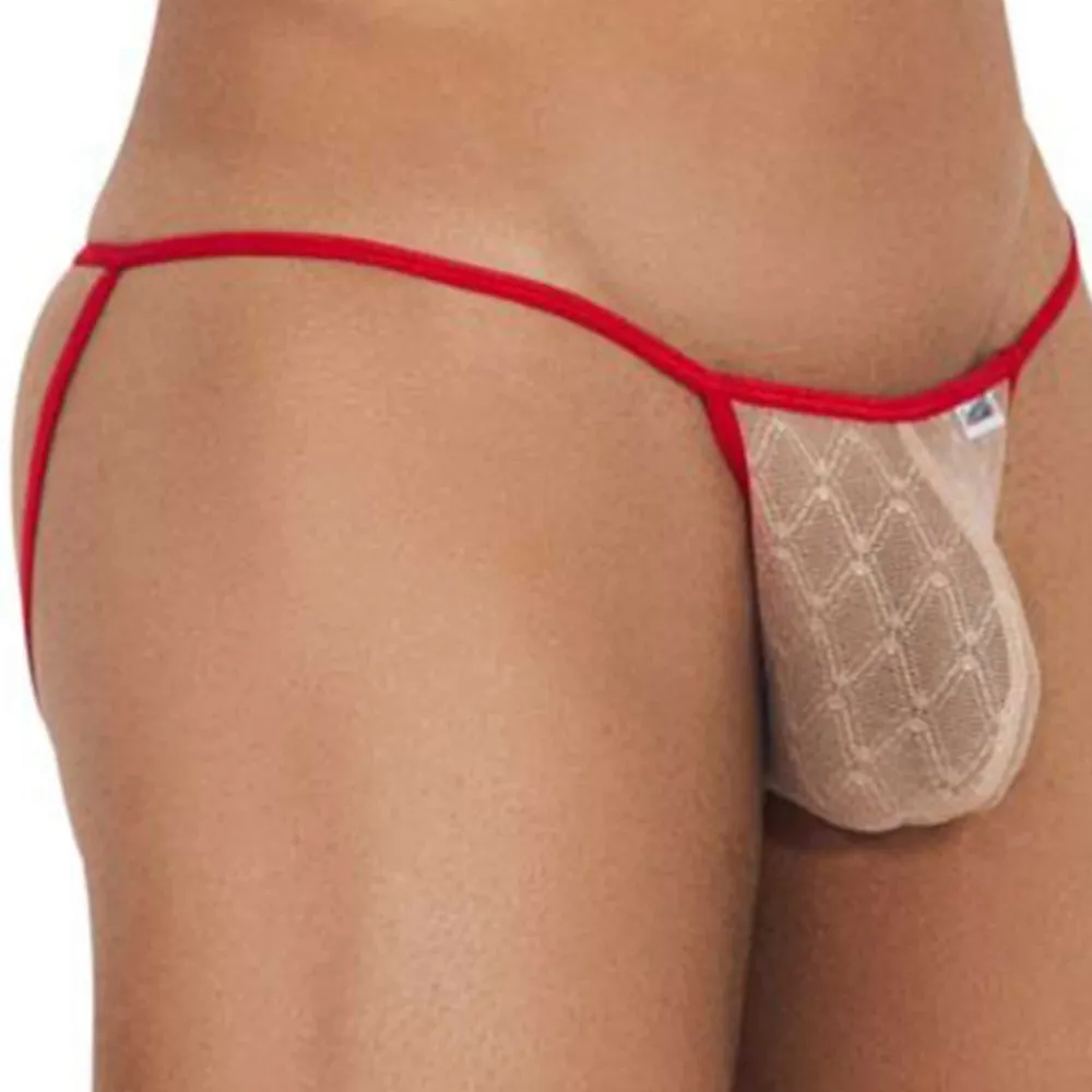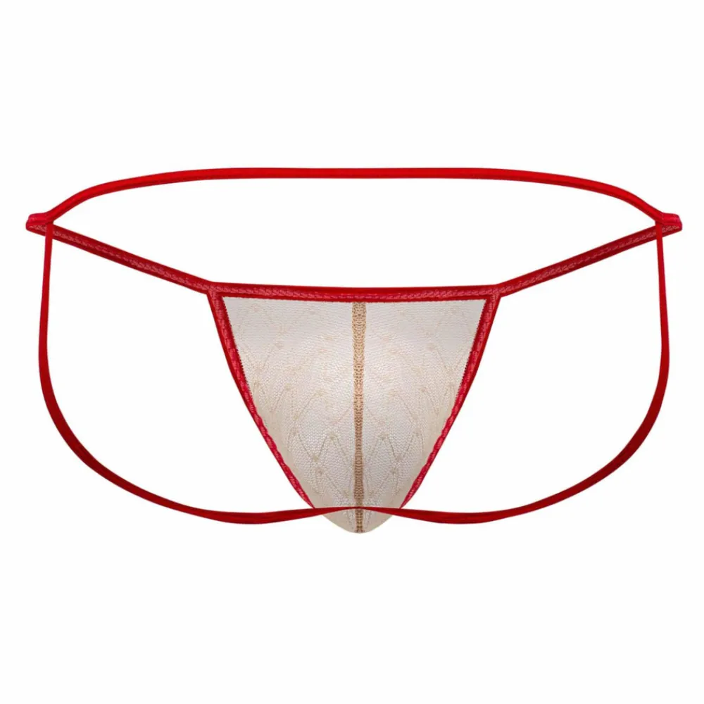 Jockstrap sexy en dentelle délicate et transparente. Fines bandes élastiques de couleur contrastée.