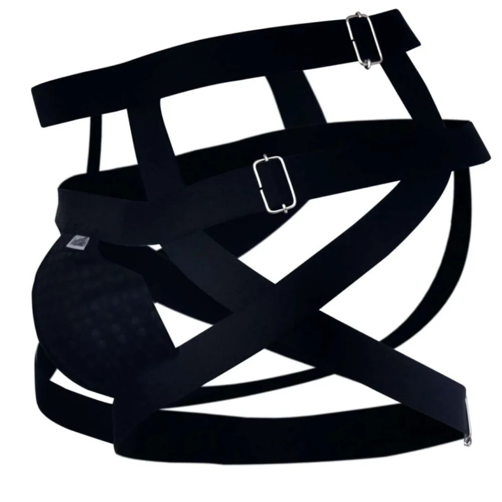 Jockstrap en microfibre stretch avec bandes élastiques ajustables. Straps supplémentaires pour soulever les fesses et leur donner un bel aspect bien rond. Poche frontale à pois ton sur ton.