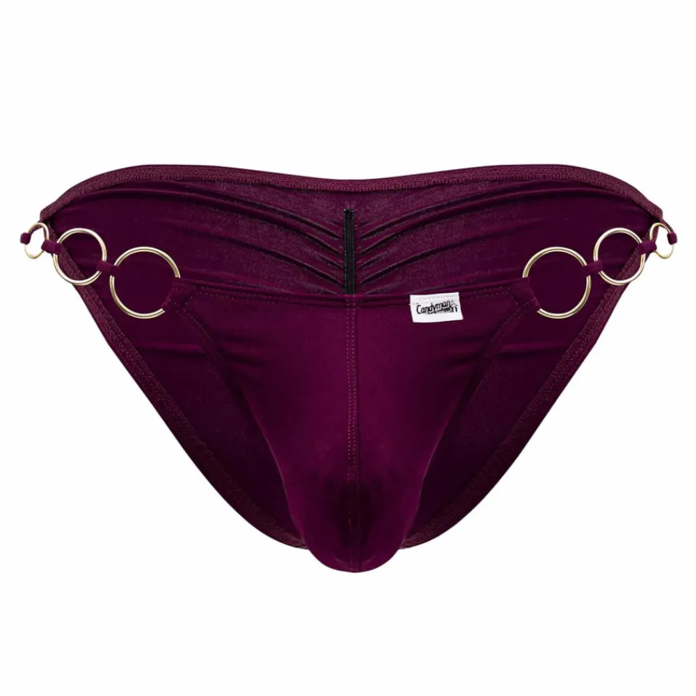 Slip tanga sexy en microfibre extensible, aussi douce et lisse qu’une seconde peau. Coupe taille basse, minimaliste, et très échancrée sur les fesses. Fines bretelles latérales reliées par des anneaux en métal doré. Poche frontale non doublée.