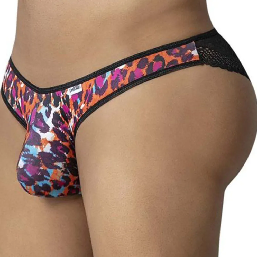 Slip provocant en microfibre ultra extensible, douce et légère, imprimée d’un motif léopard. Dos en dentelle avec une découpe audacieuse sur les fesses.