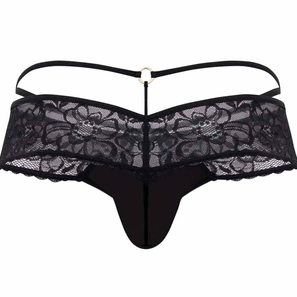 String très sexy en dentelle microfibre stretch douce et soyeuse. Désign original et provocant. Poche frontale préformée non doublée.