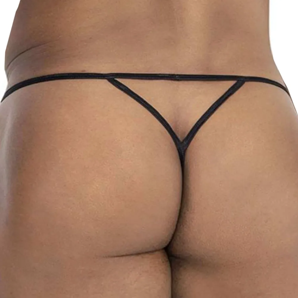 String minimaliste et provocant en fine résille légèrement transparente. Poche frontale doublée. Fine ceinture élastique.