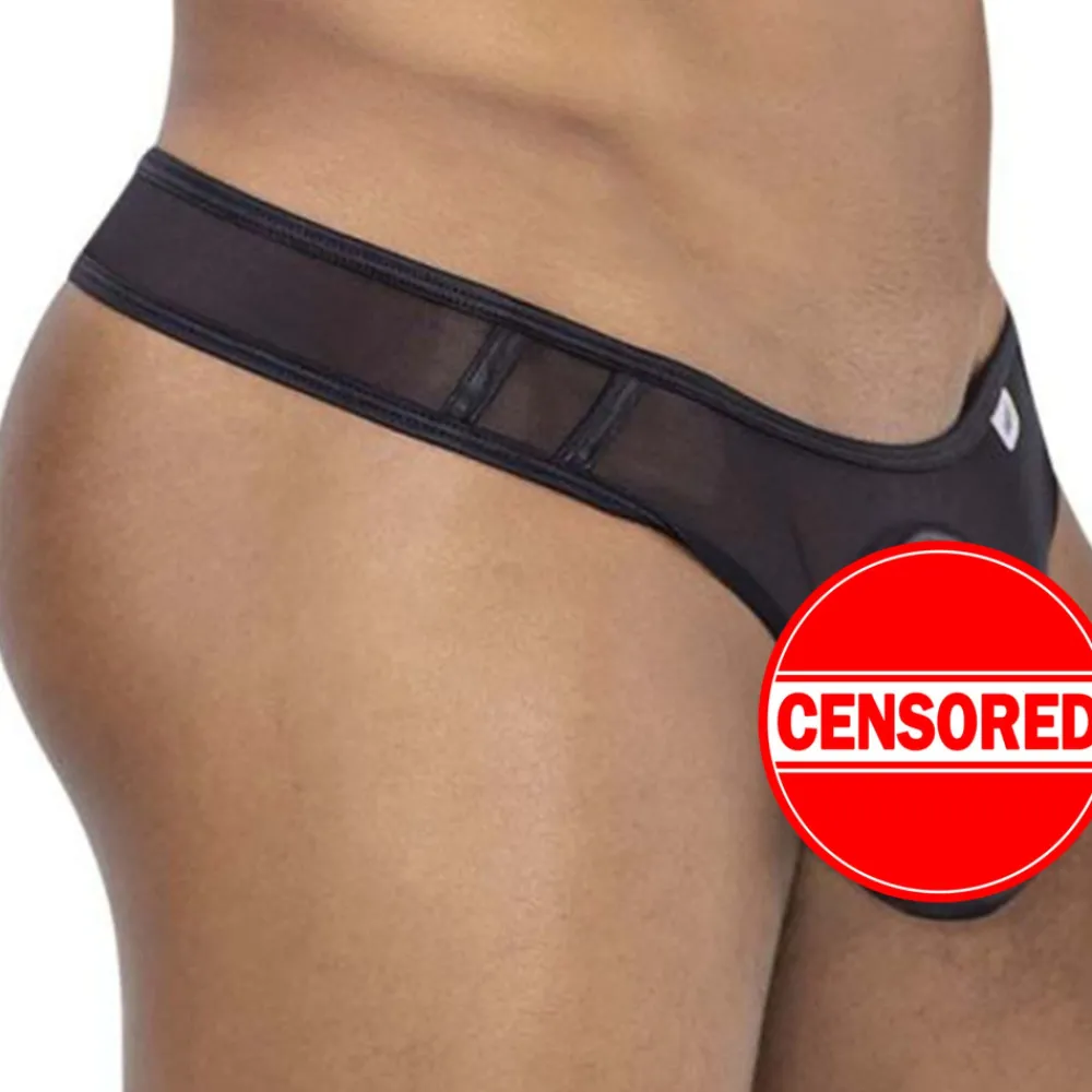 String très sexy en résille douce et totalement transparente. Bordures et bandes sport de couleur contrastée. Poche frontale non doublée. Fine ceinture élastique.