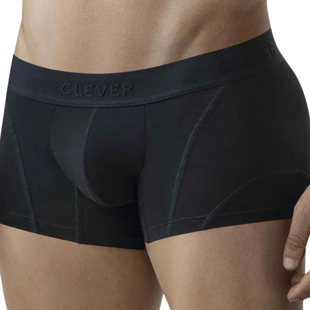 Boxer en coton extensible, doux et confortable, de couleur unie. Coupe taille basse et ajustée. Poche frontale ergonomique doublée. Ceinture élastique signée Clever ton-sur-ton.