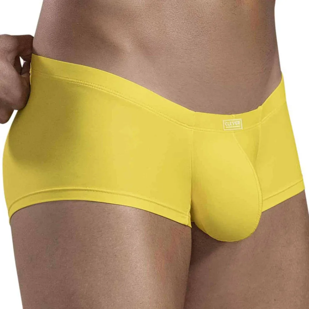 Shorty super taille basse en microfibre extensible, douce et légère, de couleur intense. Poche anatomique enveloppant naturellement votre intimité, pour un maintien très agréable et un léger effet push-up. Fine ceinture élastique recouverte avec logo Clever en silicone.