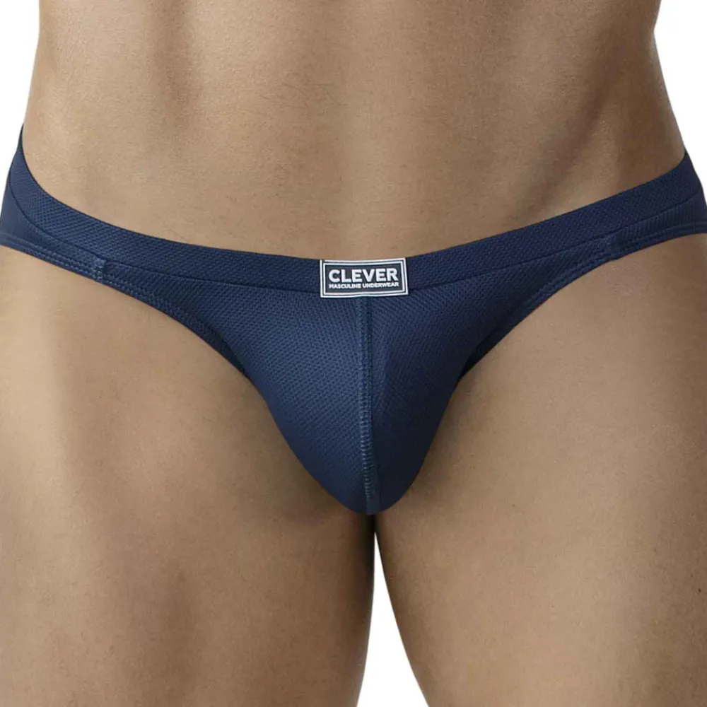 Slip en microfibre piquée, légère et extensible, de couleur unie. Coupe minimaliste, super taille basse et très ajustée. Poche frontale ergonomique non doublée. Fine ceinture élastique recouverte avec étiquette Clever en silicone.