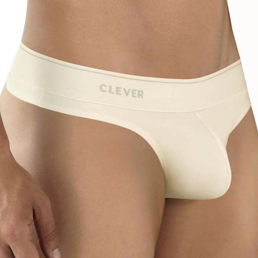 String en microfibre extensible, douce et légère, de couleur unie. Coupe taille basse et ajustée. Poche anatomique enveloppant naturellement votre intimité, pour un maintien très agréable et un léger effet push-up. Ceinture élastique signée Clever.