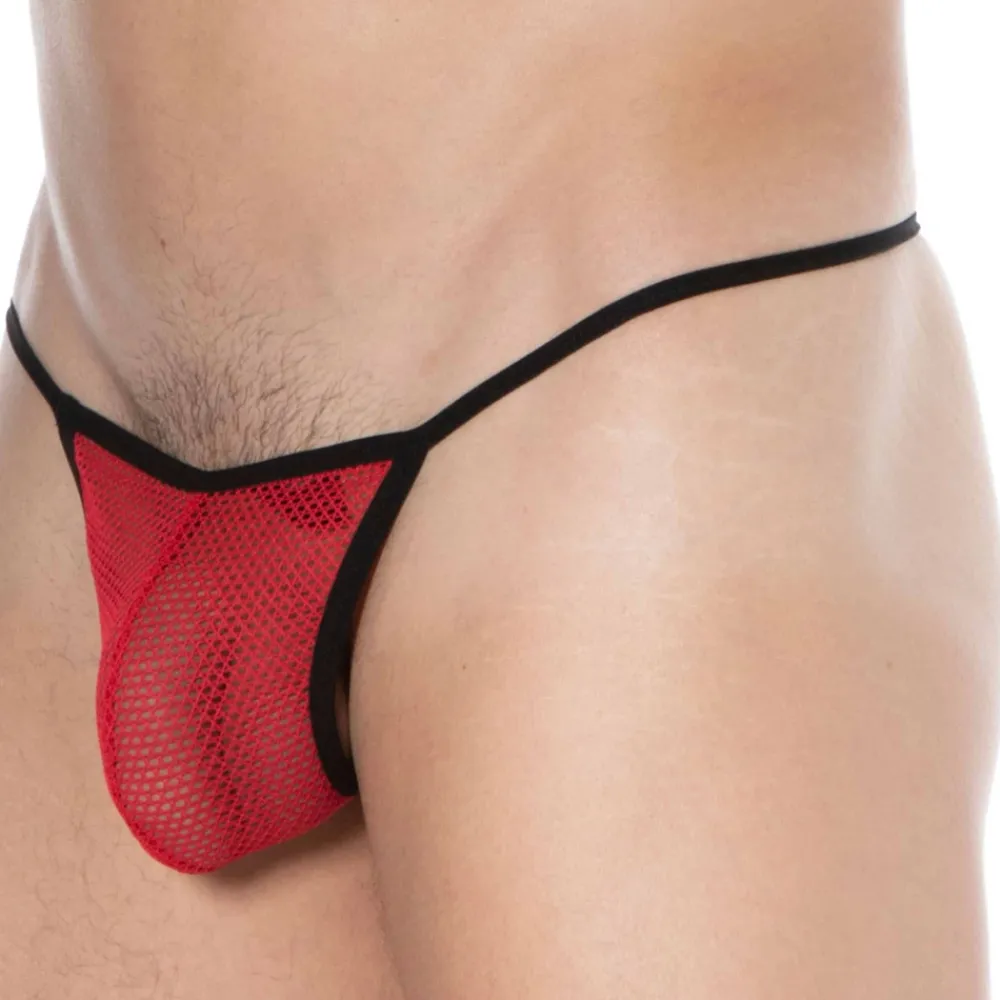 String ficelle très sexy en maille large et transparente. Tissu léger et respirant. Coupe minimaliste très provocante. Poche frontale non doublée. Fine ceinture élastique.
