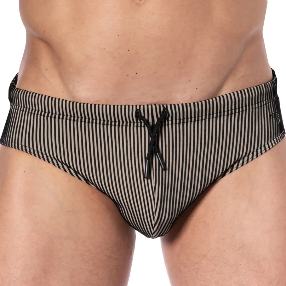 Emporio Armani Slips De Bain-Slip de Bain Rayé Noir – Beige