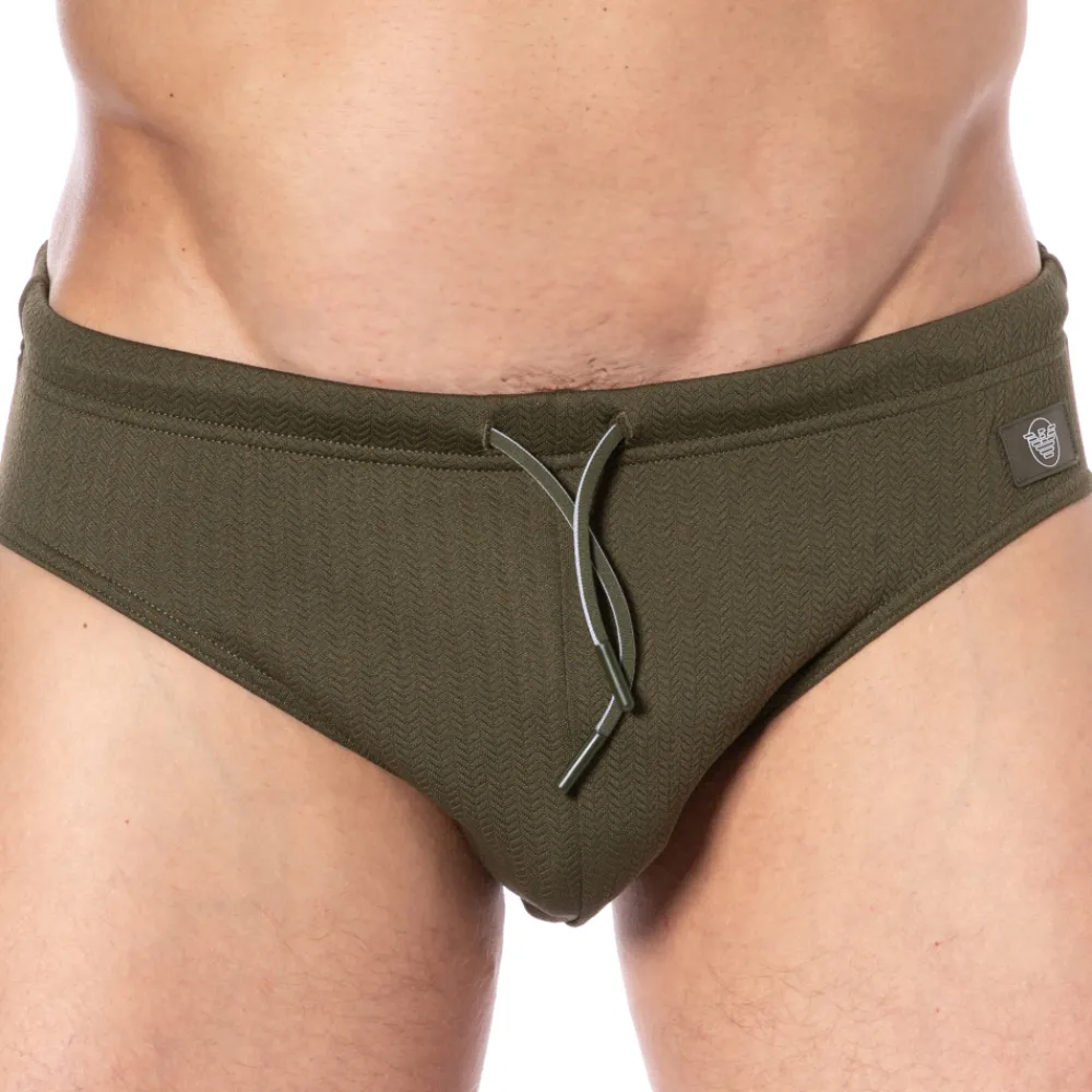 Emporio Armani Slips De Bain-Slip de Bain Satin Label Olive
