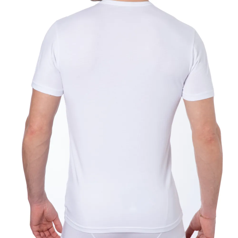 T-shirt en coton extensible très doux et confortable. Manches courtes et col rond. Logo Emporio Armani de couleur contrastée sur la poitrine.