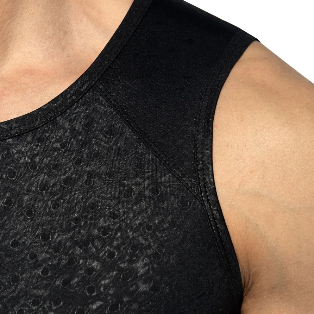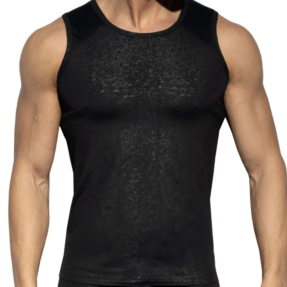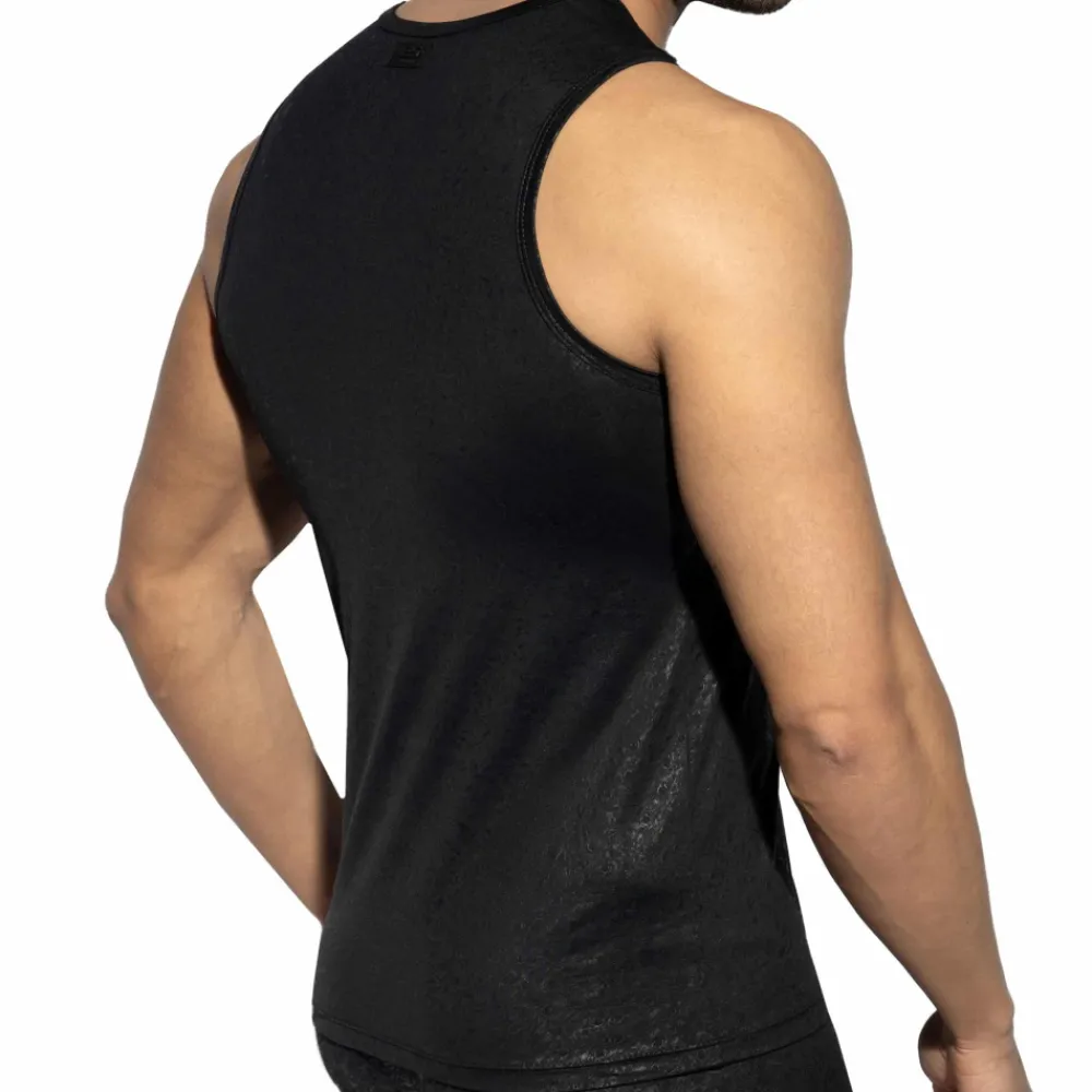 Débardeur élégant en microfibre extensible, douce et légère. Tissu monochrome avec un effet marbré très original. Col rond. Etiquette ES Collection en silicone en haut du dos.