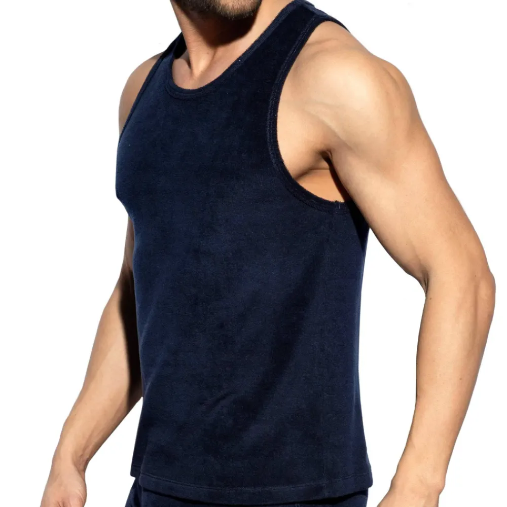 ES Collection Hauts|Débardeurs-Débardeur Coton Eponge Bleu Marine