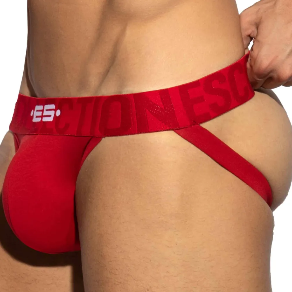 Jockstrap uni en coton doux, respirant et confortable pour un usage au quotidien. Coupe taille basse et ajustée. Belle poche frontale assurant un excellent maintien. Ceinture élastique ES Collection en jacquard.