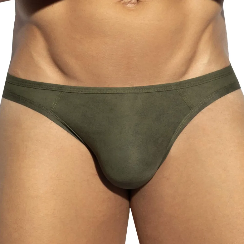 Slip sexy en microfibre fine, extensible et légère imitant le daim. Coupe taille basse, minimaliste et très ajustée. Poche frontale moulée sans couture pour un confort optimal. Etiquette ES Collection en silicone sur le côté gauche.