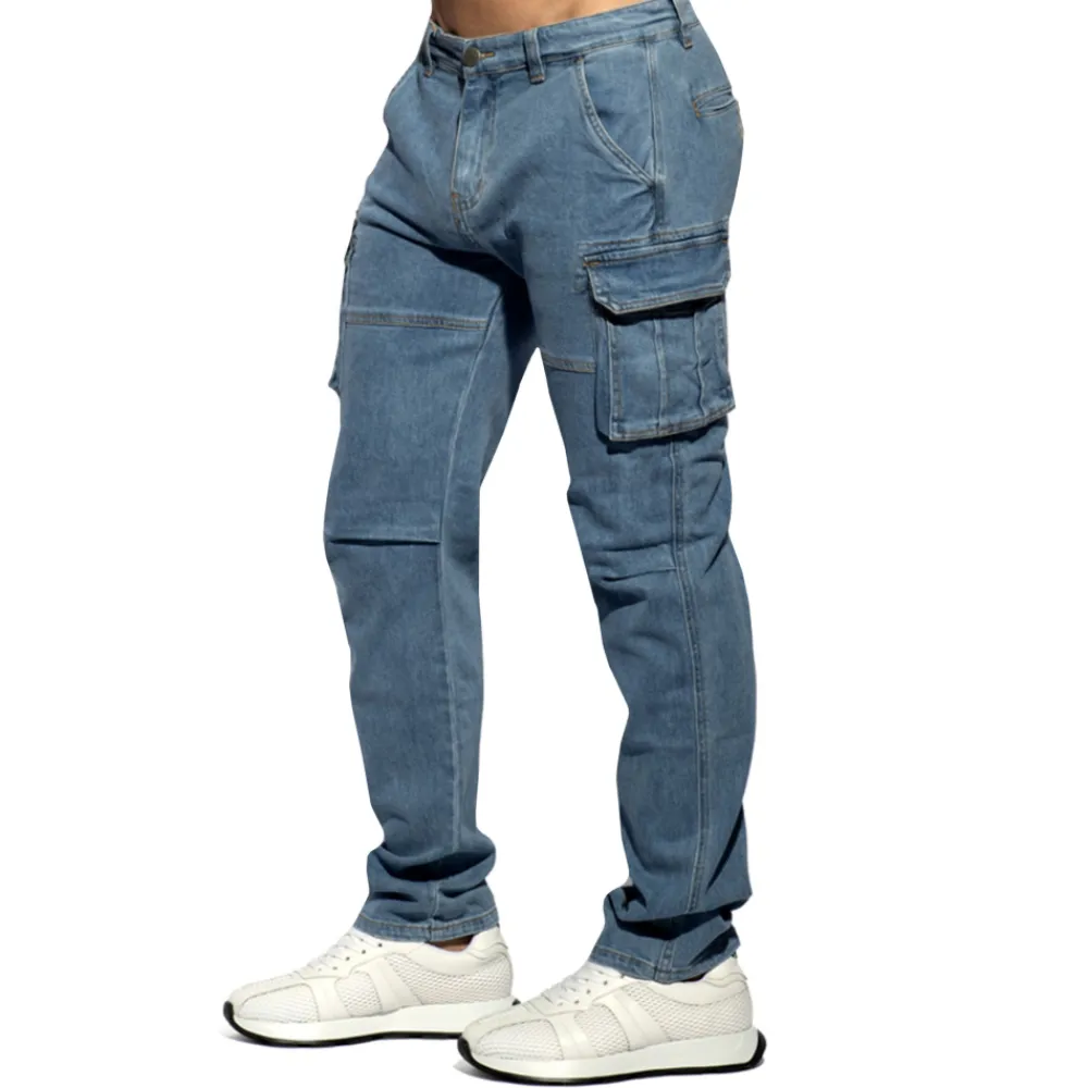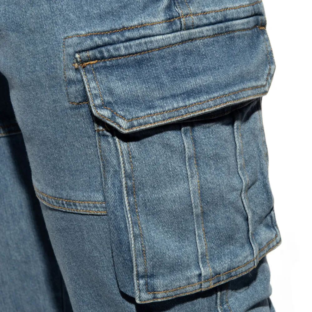 ES Collection Pantalons|Jeans-Pantalon Cargo Jeans Bleu Indigo