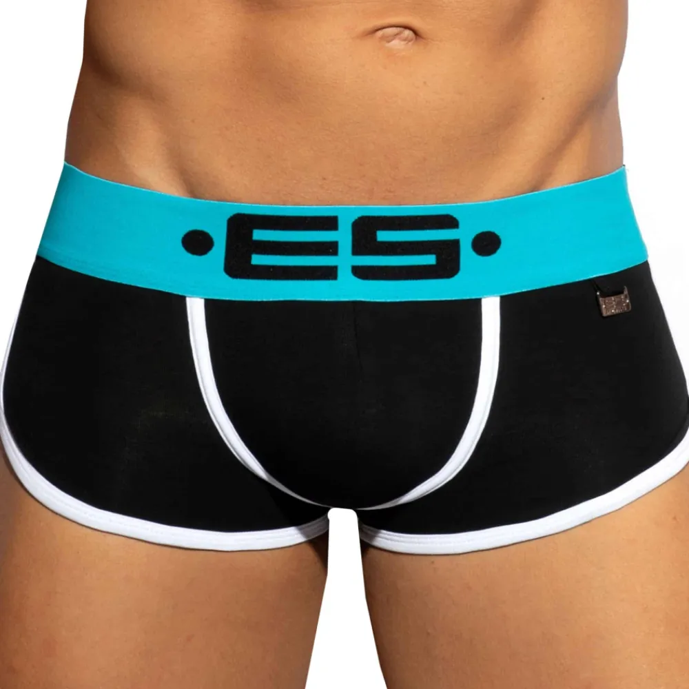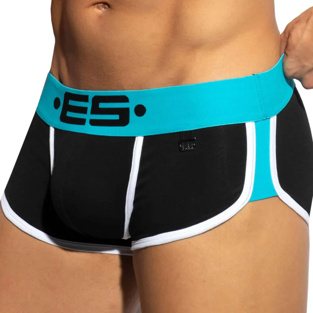 Shorty dont la coupe taille basse parfaitement ajustée a été conçue par Les Dessous d’Apollon. Poche frontale superbement découpée pour un très grand confort. L’échancrure sur le côté est soulignée par une bande de couleur contrastée. Large ceinture élastique signée ES Collection. Plaque métallique ES Paris en Zamak inoxydable.