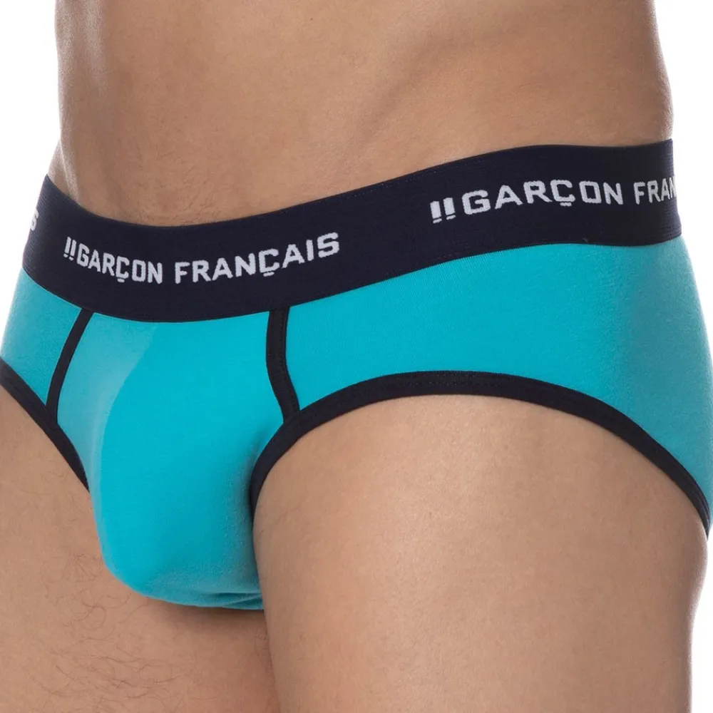 Slip taille basse très ajusté en coton doux, souple et confortable. Nouvelle version avec une poche plus ergonomique et un arrière enveloppant mieux les fesses. Belle ceinture Garçon Français. Fabrication 100% française.