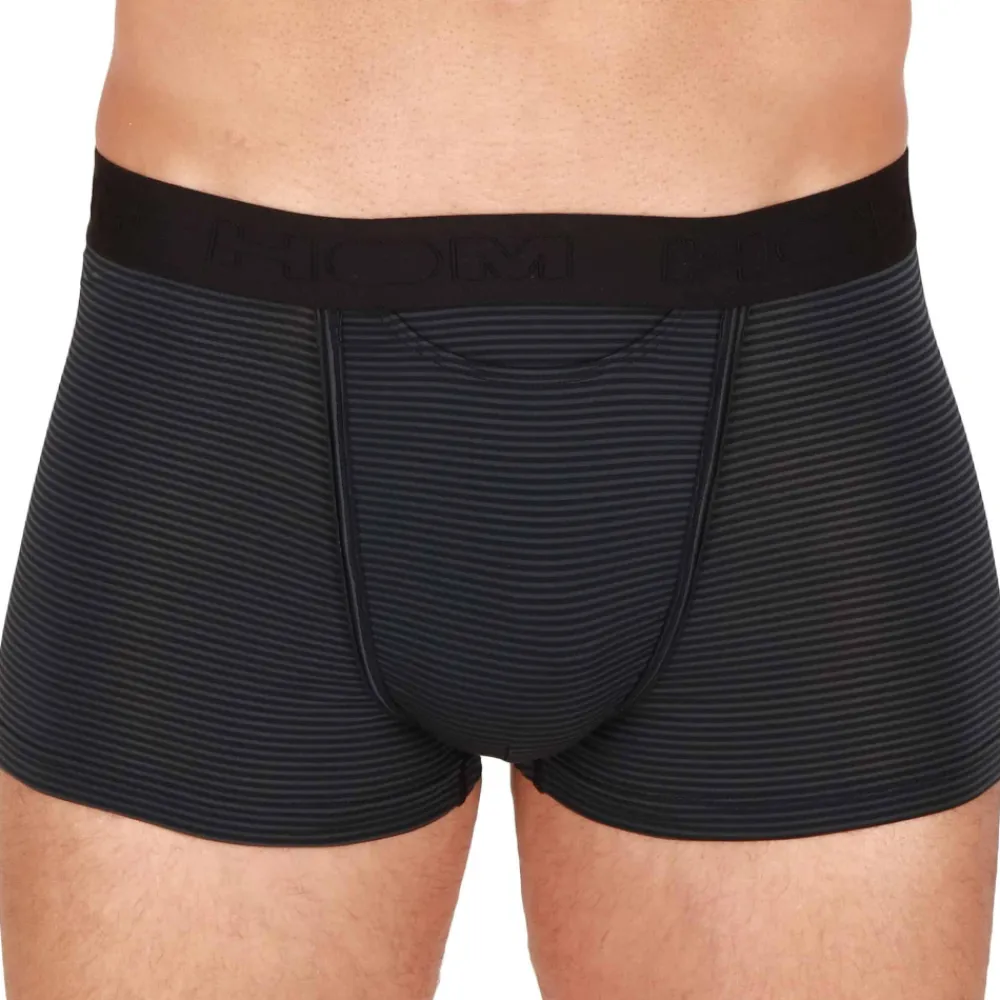 Boxer en modal doux et soyeux. Rayure fine et élégante. Coupe classique assurant confort et maintien. Ouverture horizontale HO1 brevetée par HOM, aussi pratique pour les droitiers que les gauchers. Ceinture élastique HOM.