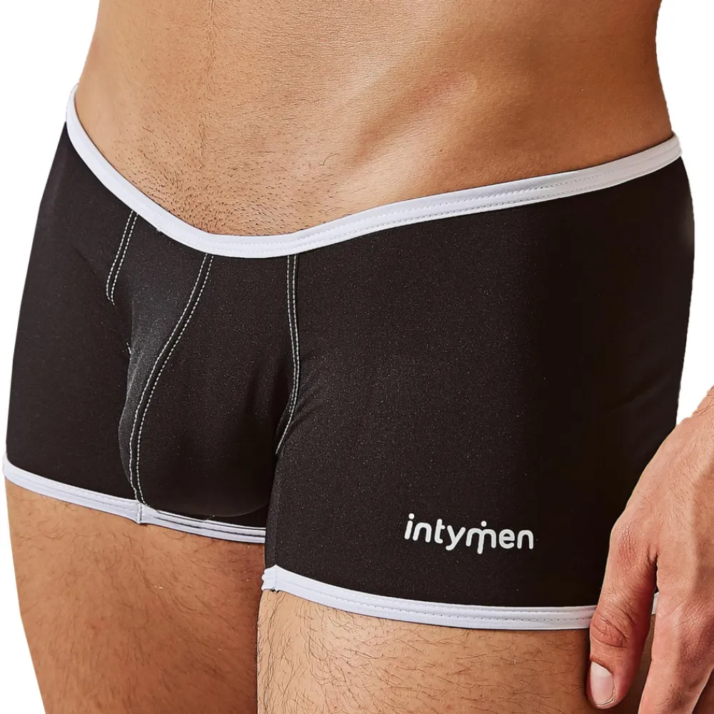 Boxer court en microfibre douce et légère. Ceinture élastique fine et bordures de couleur contrastée.