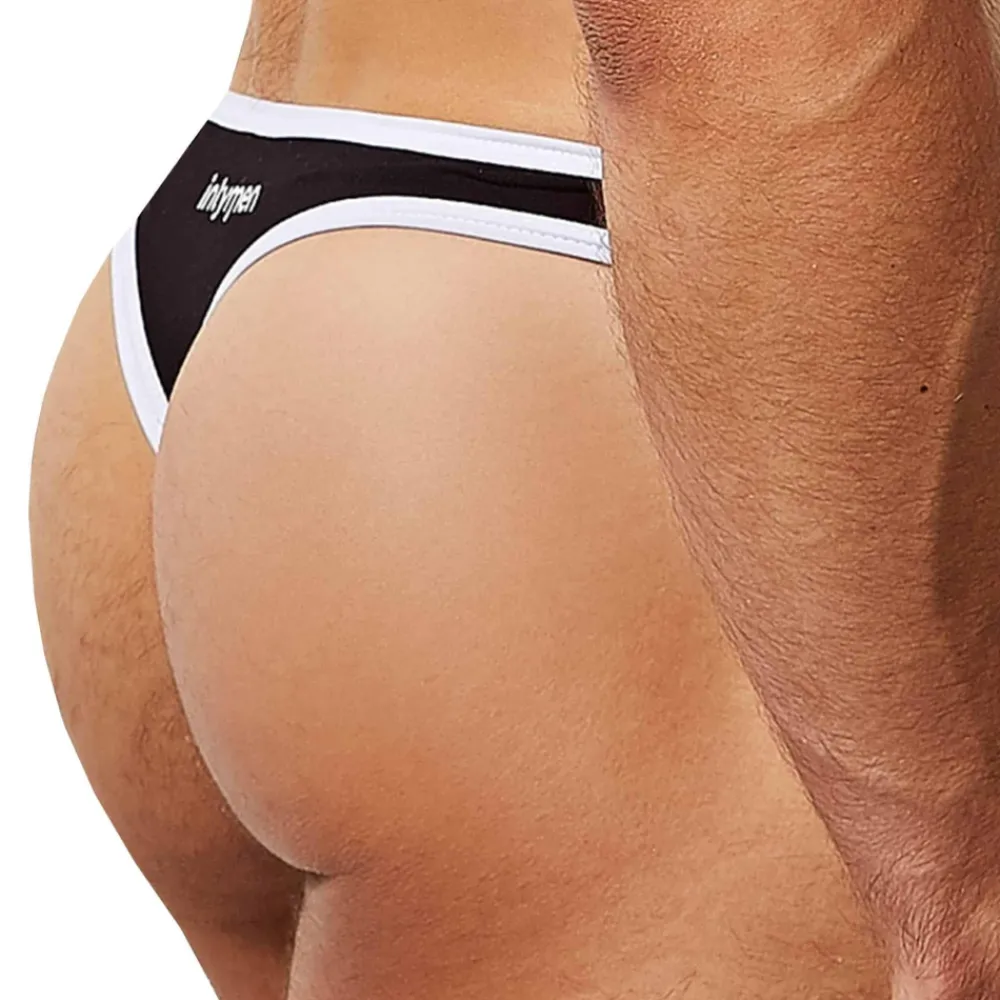 String en microfibre douce et légère. Coupe taille basse et minimaliste. Ceinture élastique fine et bordures de couleur contrastée.