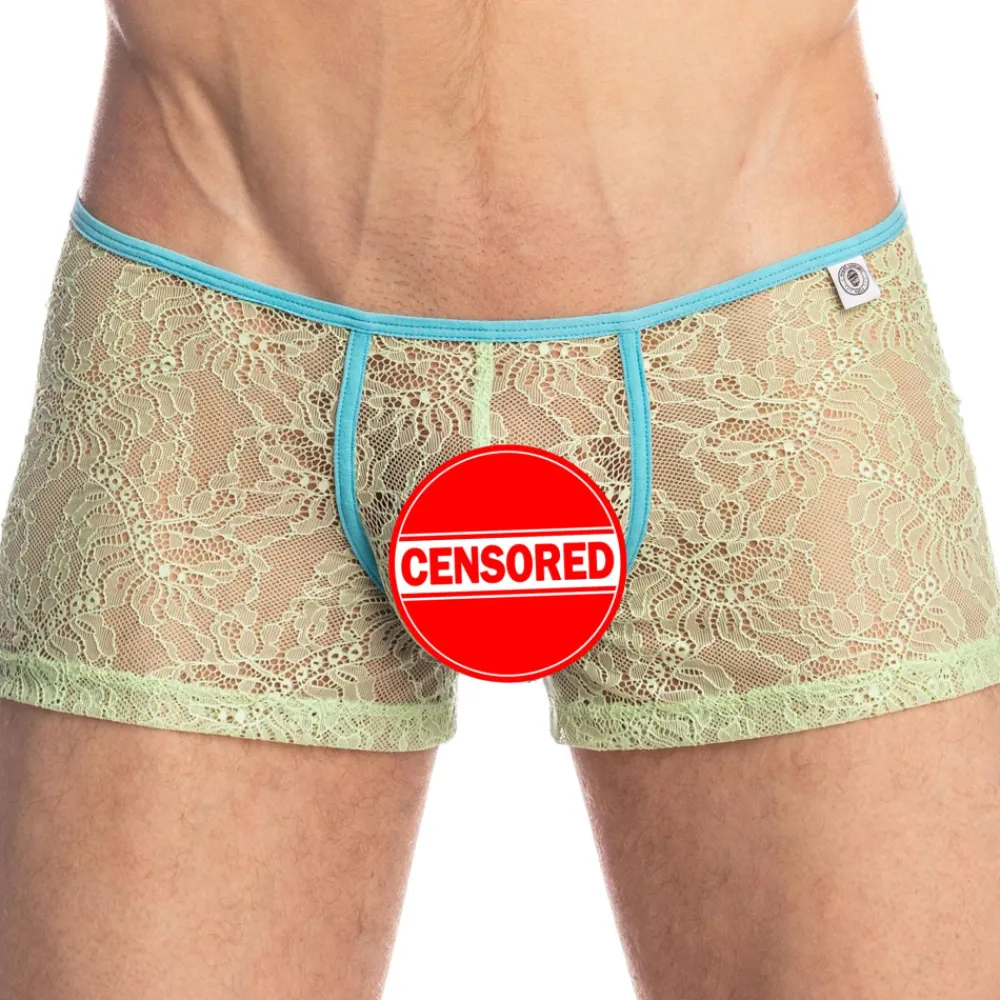 Boxer sexy et luxueux en dentelle extensible transparente, douce et légère. Coupe ultra taille basse et ajustée. Poche frontale ergonomique, non doublée. Etiquette L’Homme Invisible cousue sur la fine ceinture élastique contrastée.