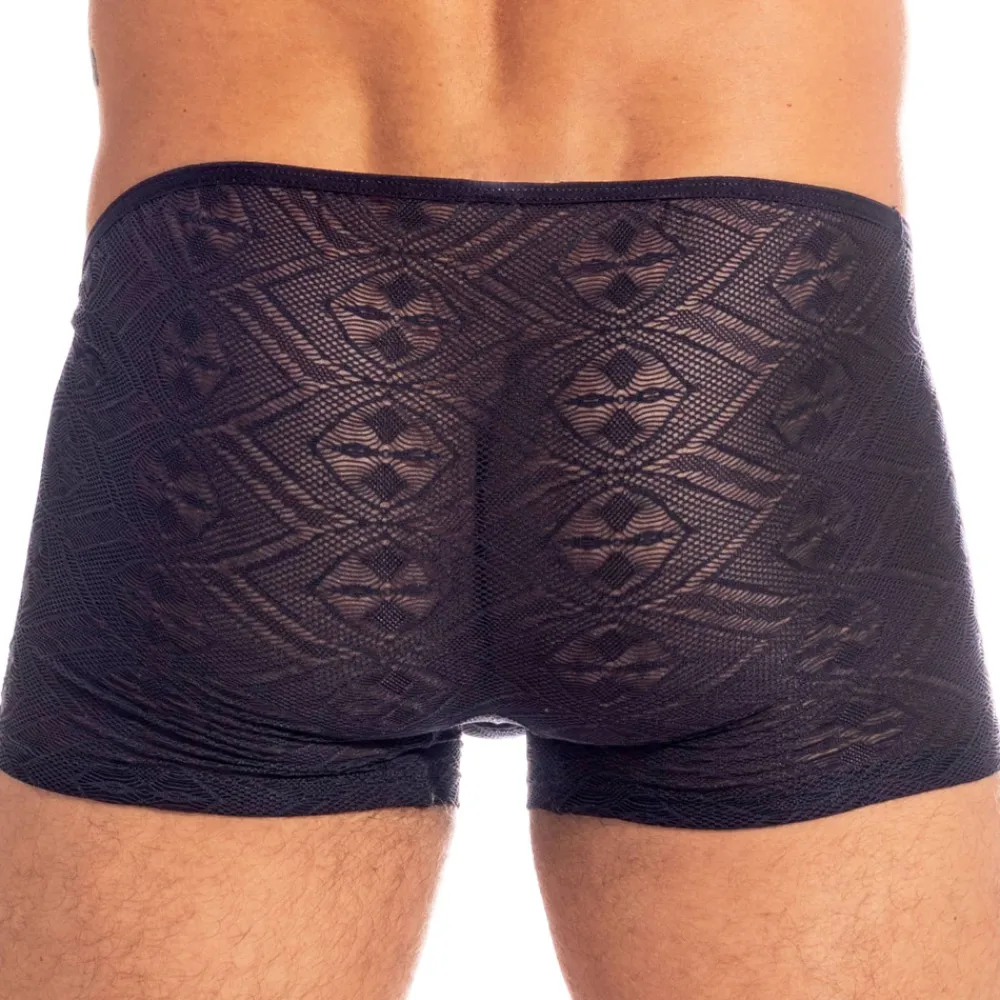 Shorty très sensuel en jacquard se jouant du contraste entre transparence et opacité des motifs. Coupe très ajustée pour un effet seconde peau. Poche frontale non doublée.