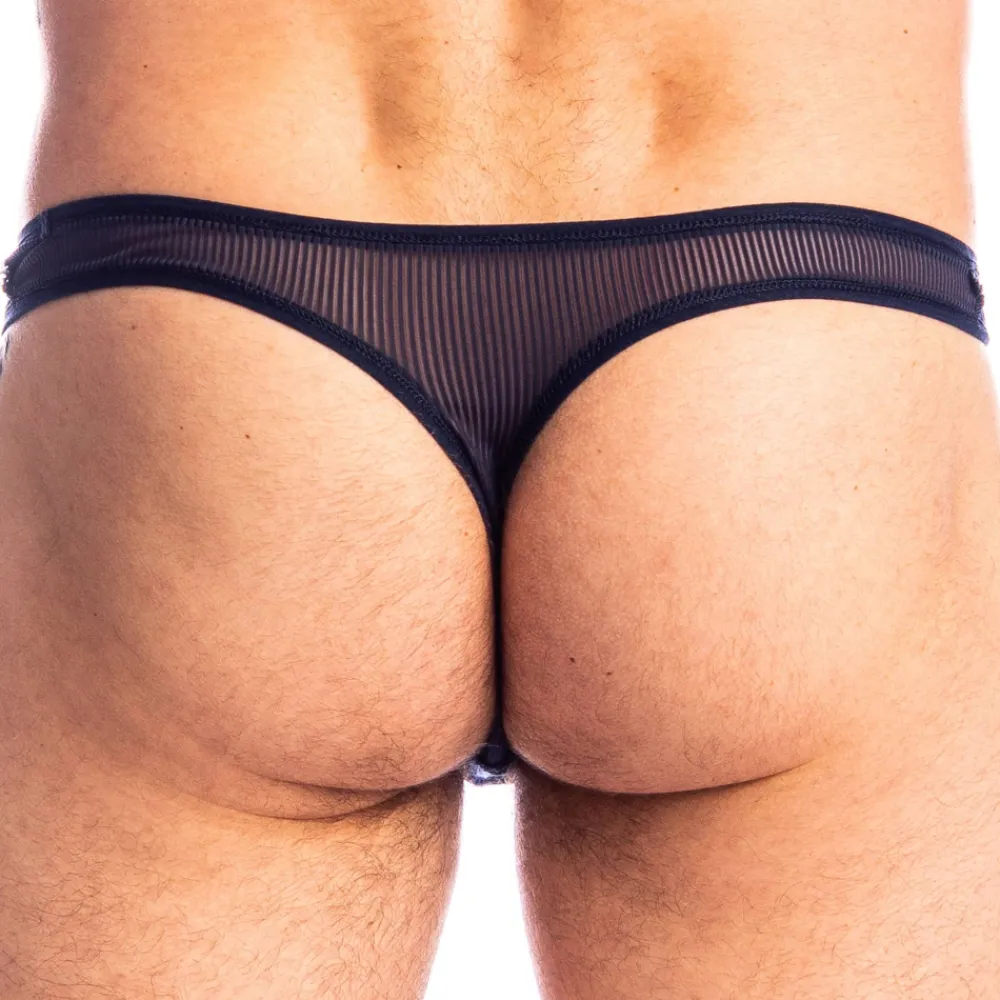 String épuré et moderne en fine maille transparente, rayée, fluide et légère. Coupe minimaliste super taille basse. Poche frontale préformée non doublée. Etiquette L’Homme Invisible cousue sur la fine ceinture élastique.
