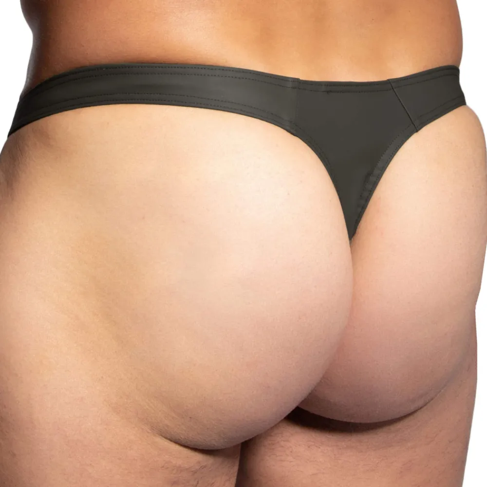 String très sexy en simili-cuir mat, ultra doux et confortable. Poche frontale préformée, non doublée. Fine ceinture élastique recouverte. Etiquette Manstore cousue sur la hanche gauche.