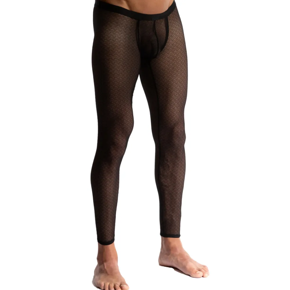 Caleçon long très sexy en résille fine et transparente, décorée d’un motif géométrique. Poche frontale préformée, non doublée. Etiquette Manstore cousue sur la fine ceinture élastique.