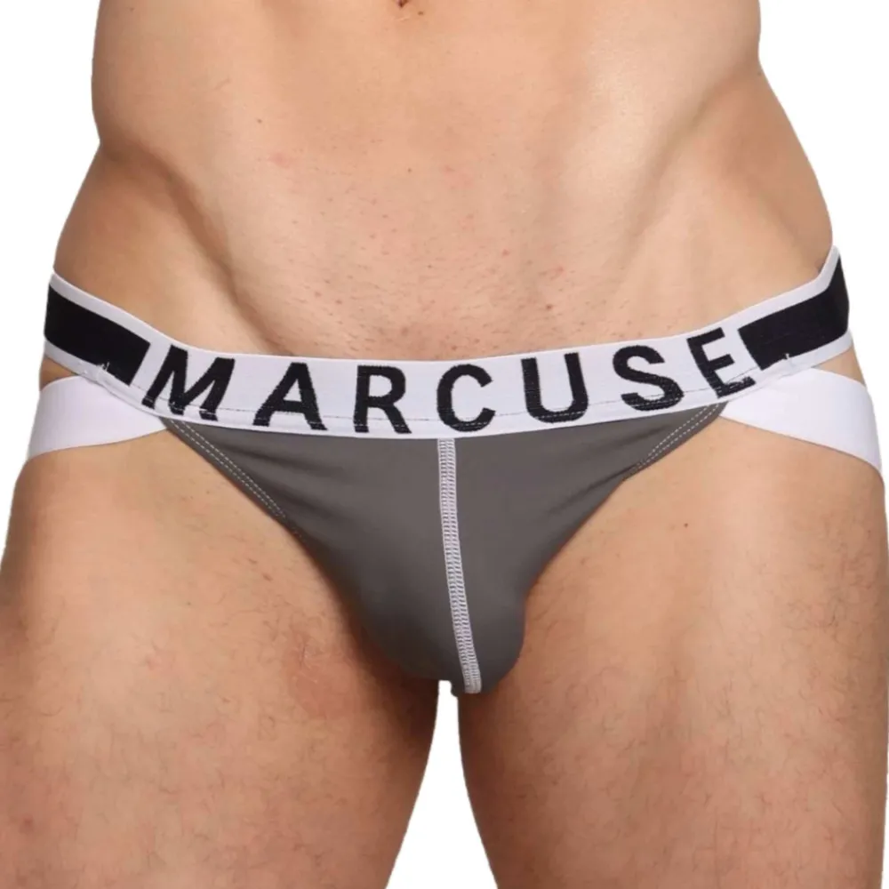 Jockstrap ultra confortable en microfibre extensible, douce et respirante. Coupe taille basse et ajustée. Poche frontale 3D non doublée. Ceinture élastique signée Marcuse.