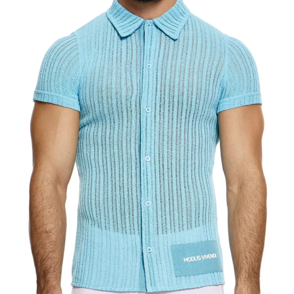 Chemise monochrome très sexy en tissu léger et respirant. La matière en crochet dévoile sensuellement le corps en transparence, pour un look à la fois élégant et provocant. Fermeture 6 boutons. Col chemise. Coupe cintrée. Grande étiquette Modus Vivendi cousue au niveau de la taille.