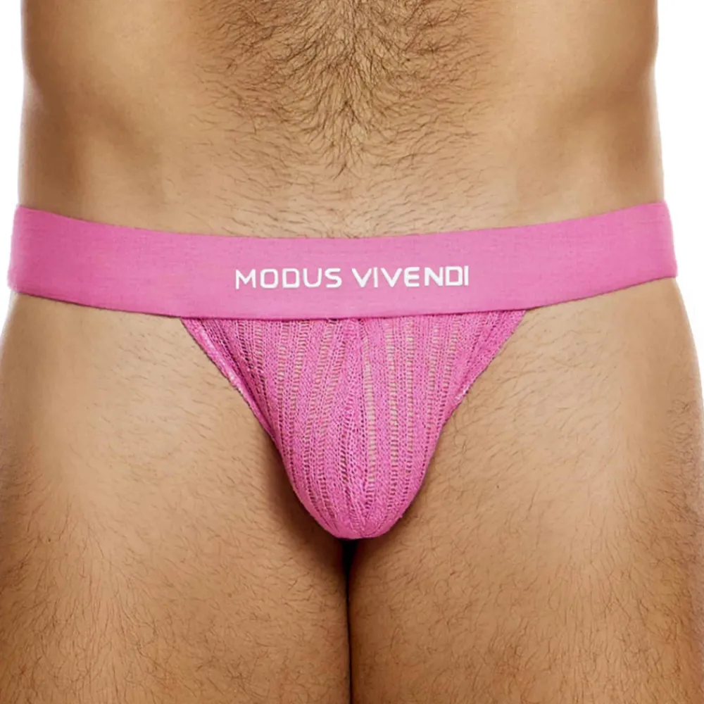 Jockstrap monochrome très sexy en tissu léger et respirant. La matière en crochet dévoile sensuellement le corps en transparence. Ceinture élastique extra large signée Modus Vivendi.