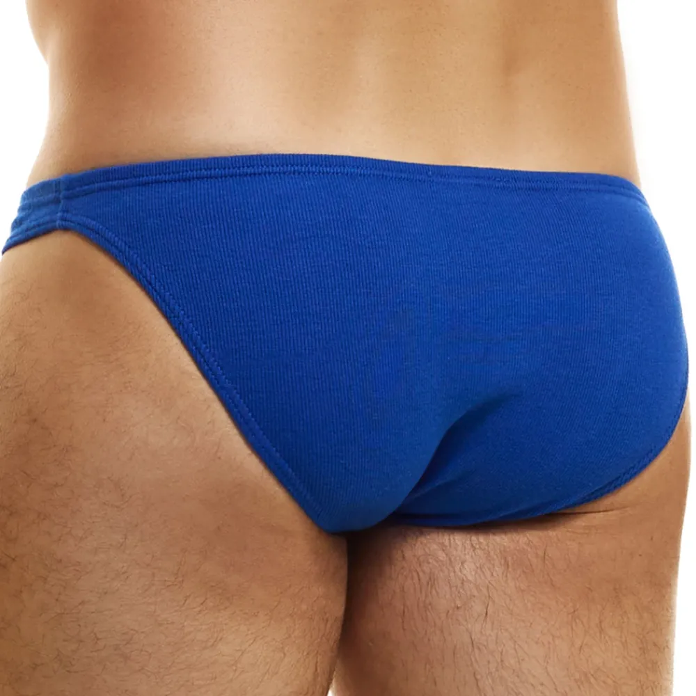 Slip taille basse en coton côtelé, doux et confortable, de couleur intense. Tissu éco-responsable certifié GOTS. Coupe minimaliste. Logo MV sur la hanche gauche. Ceinture élastique fine et recouverte.