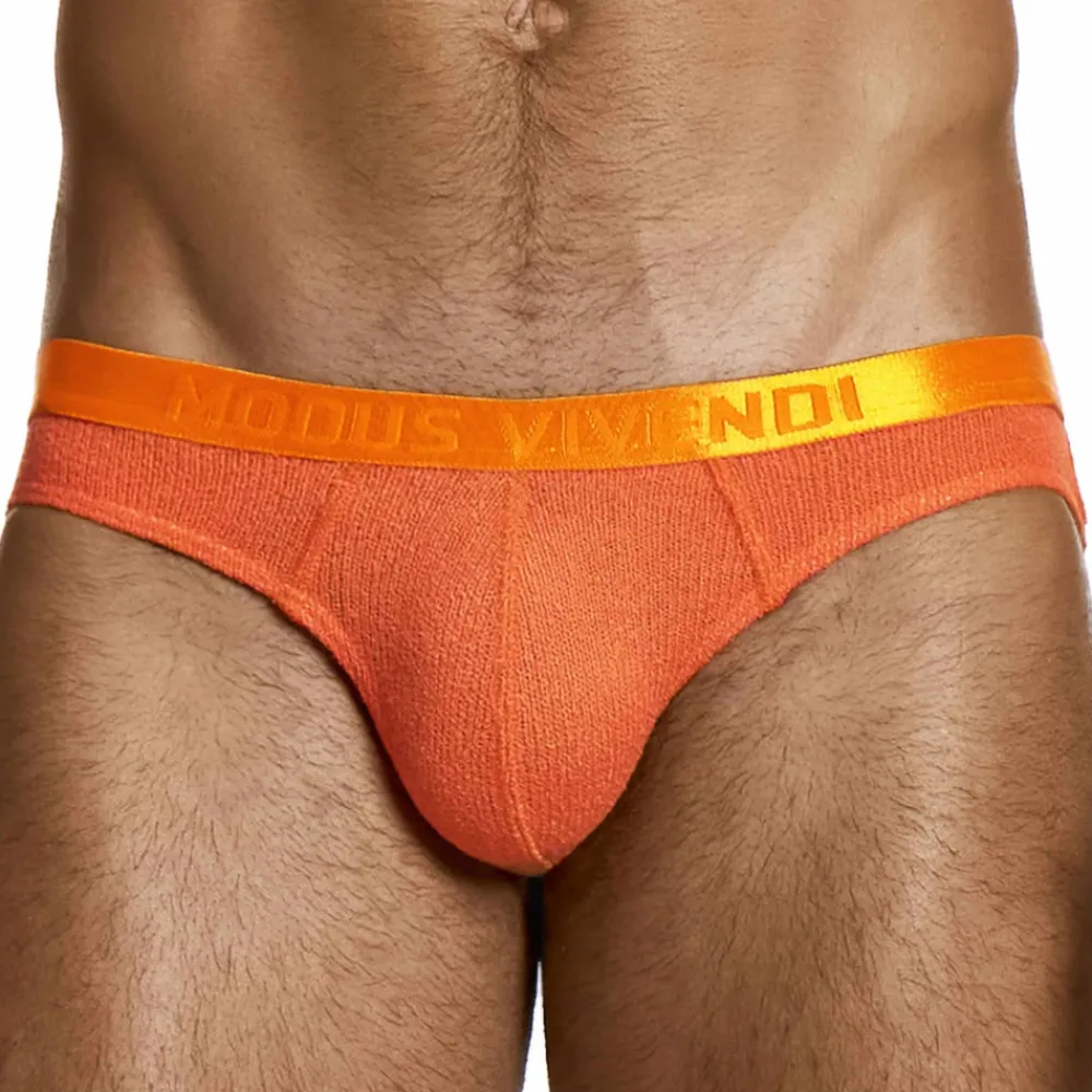 Slip taille basse très sexy en tissu bouclette tricoté. Poche frontale non doublée. Ceinture élastique satinée signée Modus Vivendi.