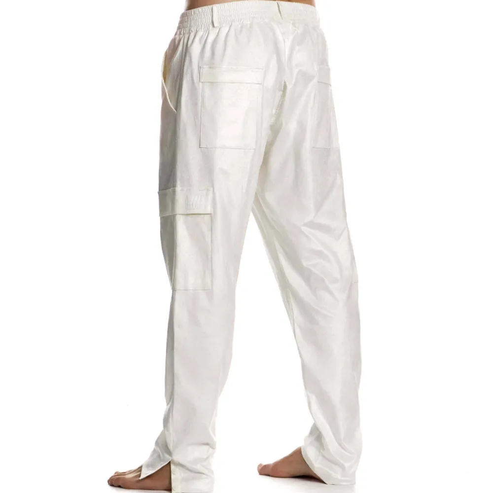Pantalon cargo en coton tissé doux, léger et respirant. Tissu imitant le velours avec une finition brillante. 6 poches, dont 4 plaquées avec rabat. Ceinture élastique recouverte avec passants. Ouverture à 2 boutons sur les chevilles.