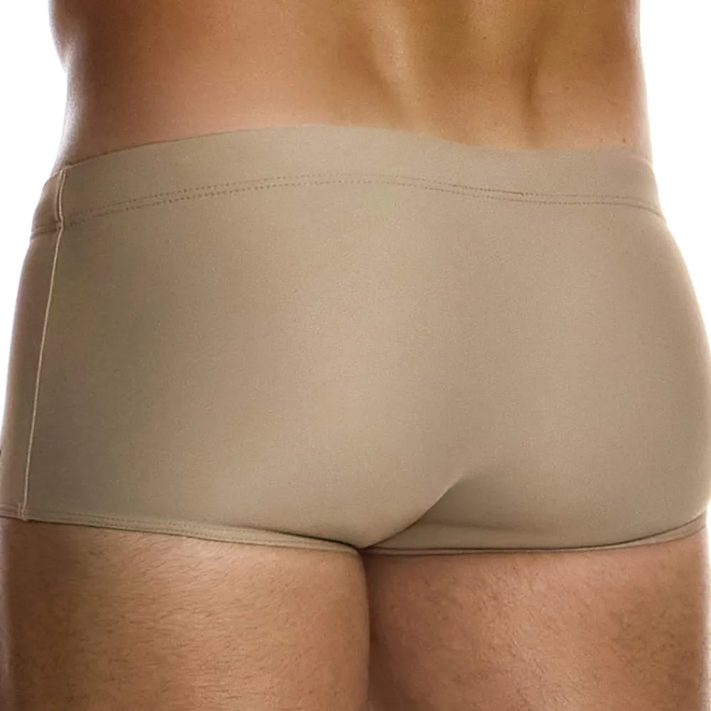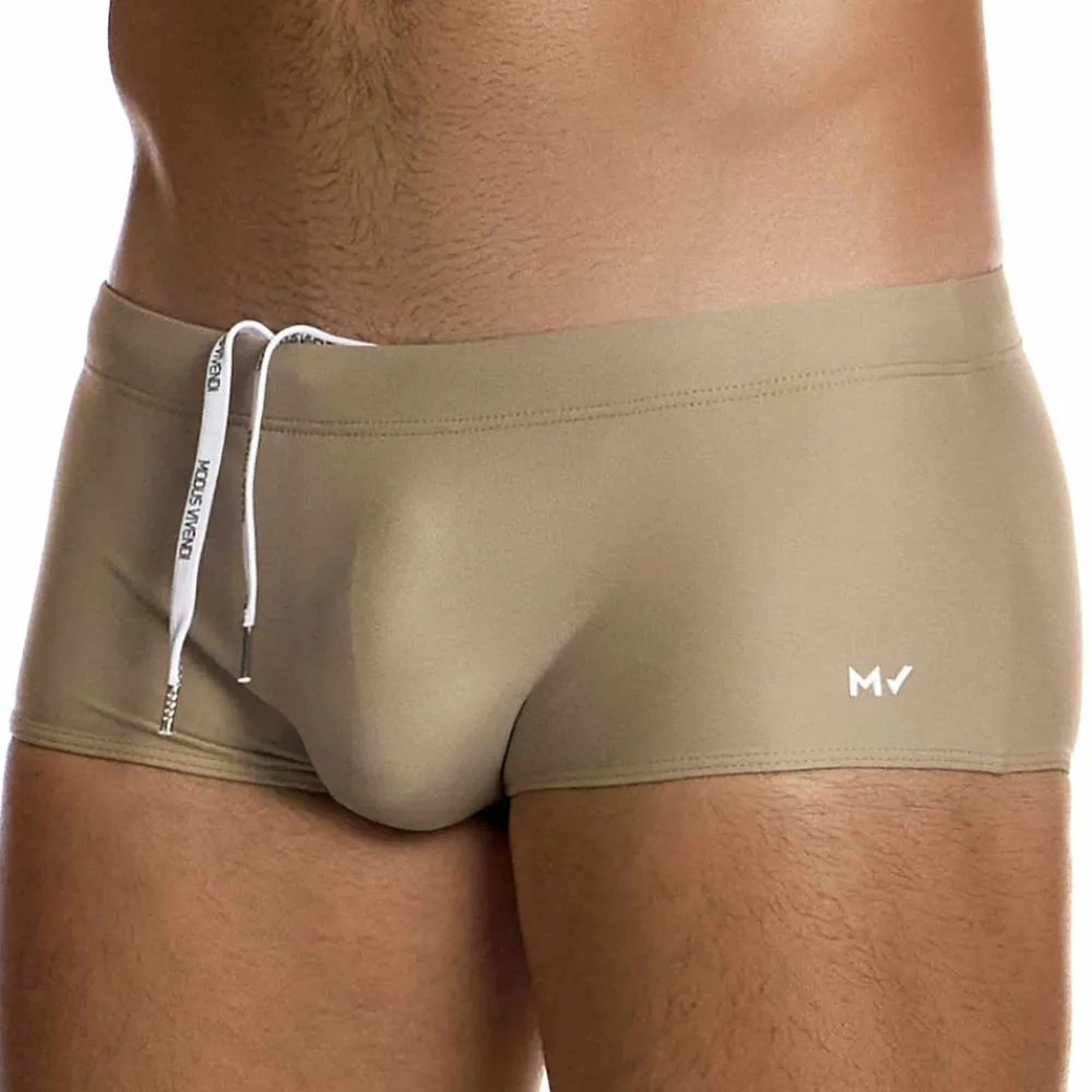 Boxer de bain taille basse de couleur chair en microfibre super douce séchant rapidement. Coupe classique et confortable. Poche frontale doublée opaque. Ceinture élastique recouverte avec cordon de serrage intérieur. Logo MV en silicone sur la cuisse gauche.