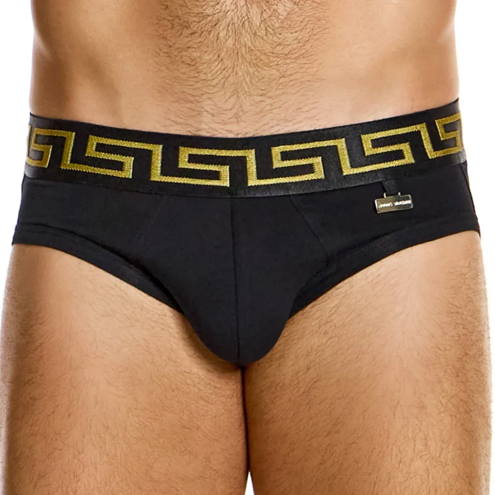 Slip taille basse, original et sexy, en coton ultra doux et confortable. L’arrière a été découpé à la manière d’un jockstrap, afin d’offrir une totale liberté de mouvement. Poche frontale préformée et doublée pour plus de confort. Plaque métallique Modus Vivendi sur la hanche gauche. Motif inspiré par la Grèce antique sur la ceinture élastique.