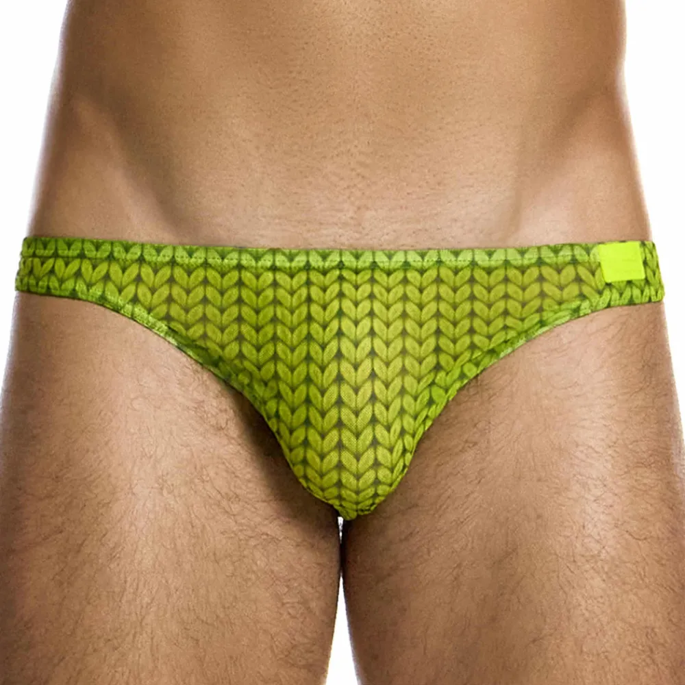 Slip sexy et original en résille fine, légère et semi-transparente. Impression en trompe-l’œil créant l’illusion d’un tissu tricoté. Coupe ultra taille basse et minimaliste. Poche frontale non doublée. Etiquette Modus Vivendi cousue sur la hanche gauche.