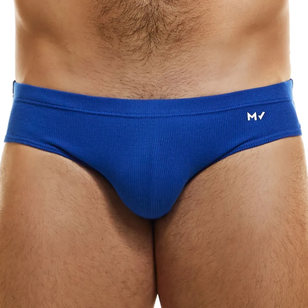 Slip taille basse en coton côtelé, doux et confortable, de couleur intense. Tissu éco-responsable certifié GOTS. Coupe classique. Logo MV sur la hanche gauche. Ceinture élastique fine et recouverte.