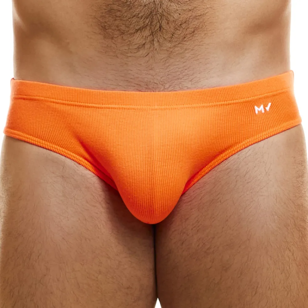 Slip taille basse en microfibre côtelée, douce et confortable, de couleur intense. Tissu éco-responsable certifié GOTS. Coupe classique. Logo MV sur la hanche gauche. Ceinture élastique fine et recouverte.