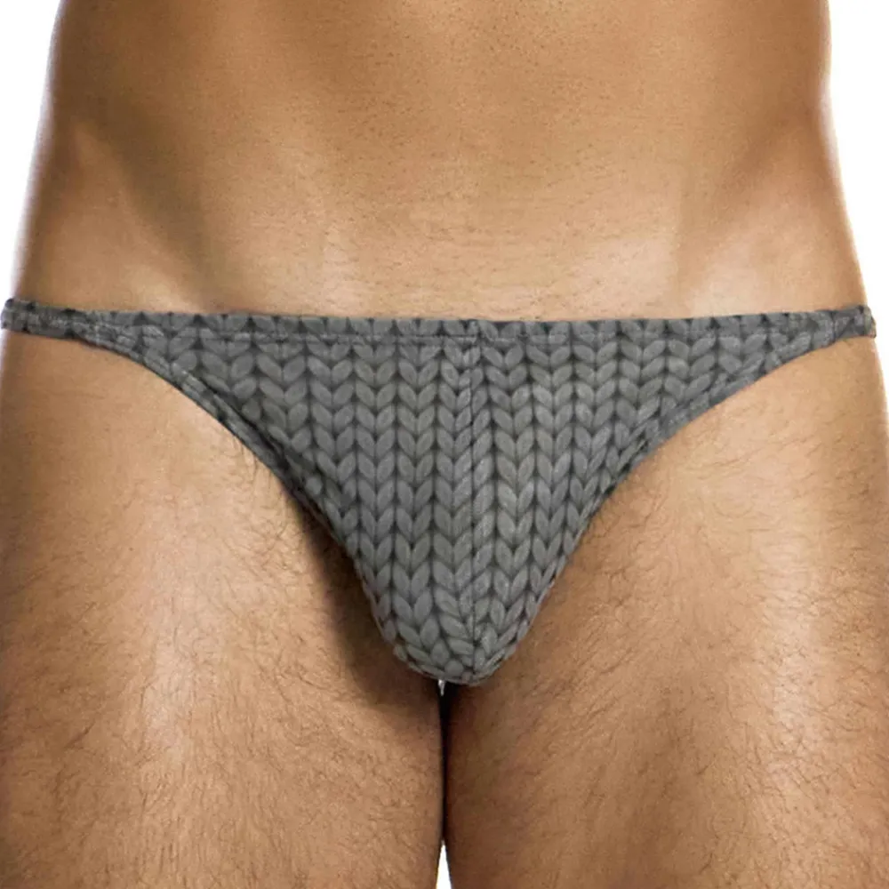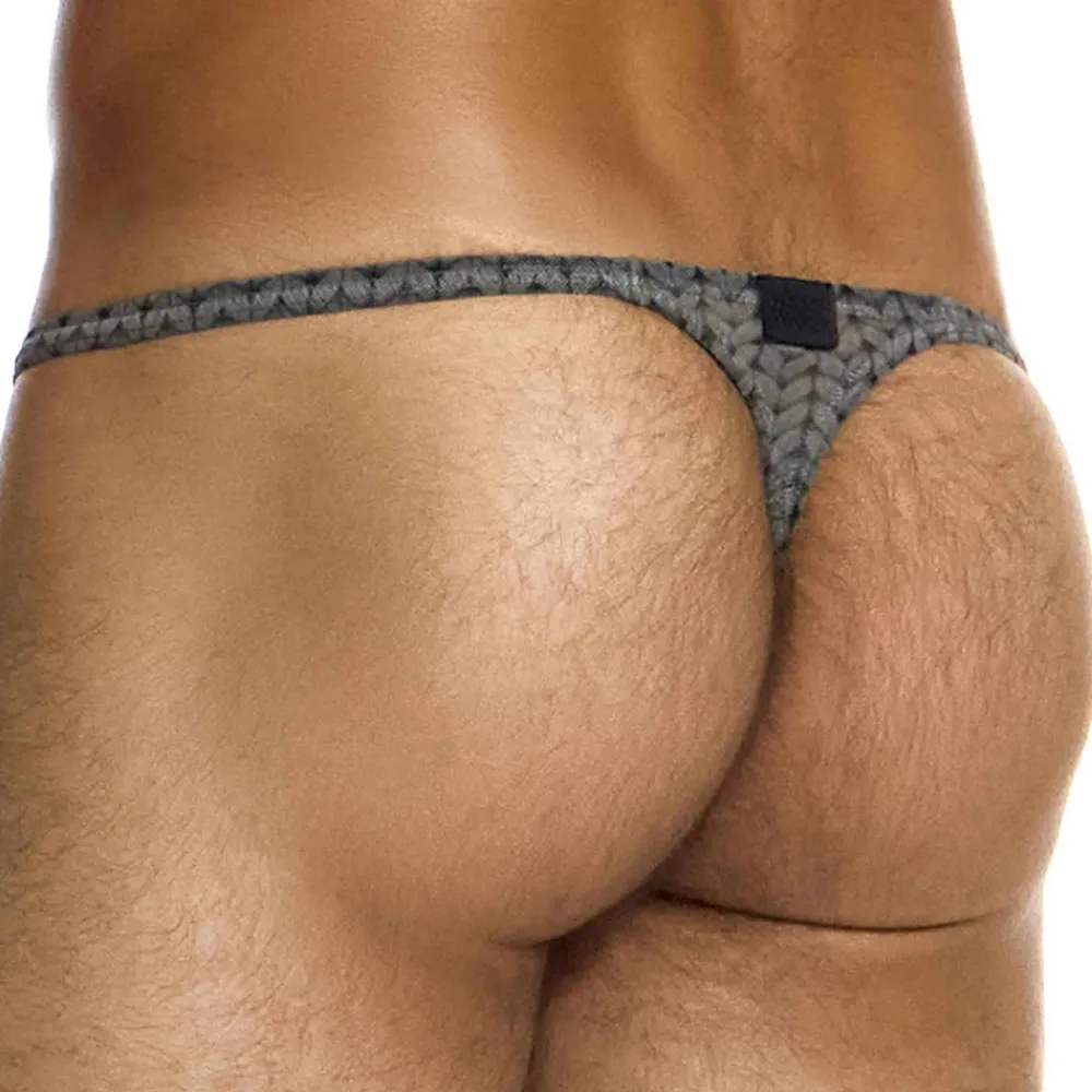String sexy et original en résille fine, légère et semi-transparente. Impression en trompe-l’œil créant l’illusion d’un tissu tricoté. Coupe taille basse et minimaliste. Poche frontale non doublée. Etiquette Modus Vivendi cousue à l’arrière.