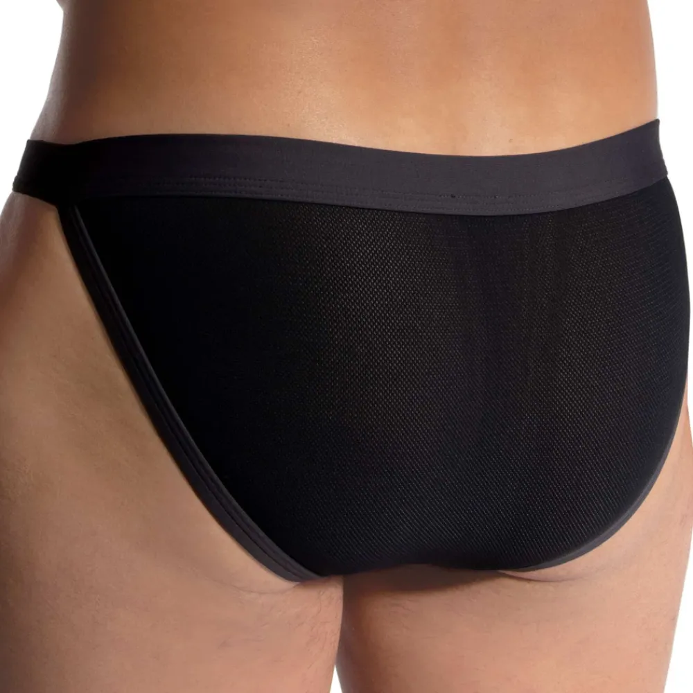 Slip taille basse en micro-mesh respirant, ultra extensible et confortable. Coupe tanga, sexy et confortable. Poche frontale préformée, non doublée. Détails de couleur contrastée. Ceinture élastique avec étiquette Olaf Benz.