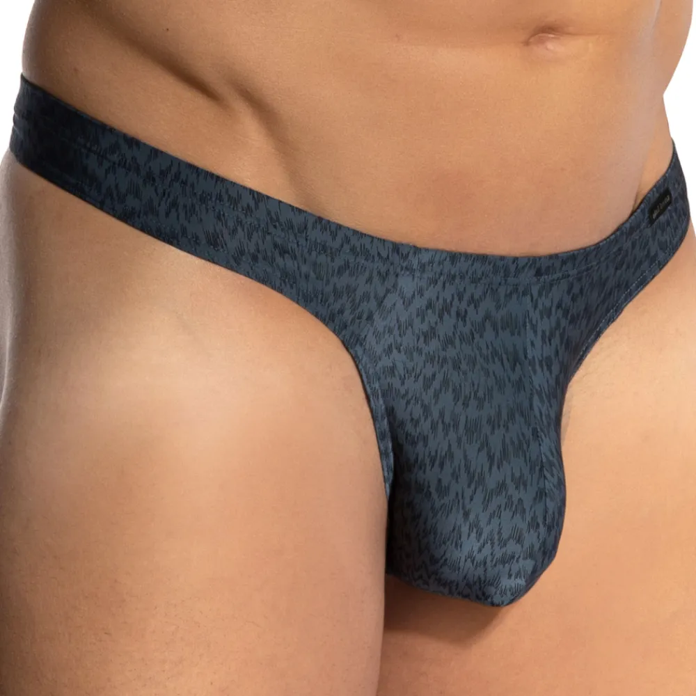 String taille basse en microfibre extensible, douce et légère. Imprimé inspiré de coups de pinceau graphiques. Coupe simple, sexy et très confortable. Poche frontale non doublée. Etiquette Olaf Benz cousue sur la fine ceinture élastique recouverte.