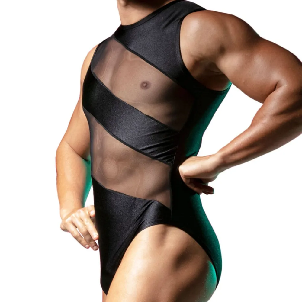 Body sexy et élégant en microfibre opaque brillante et tulle transparent. Fermeture Eclair invisible dans le dos.